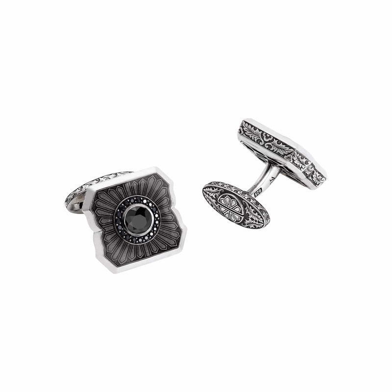 England Made Me Cuban Leaf Black Sapphire Cufflinks