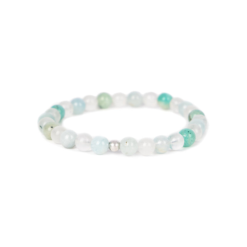 14k White Gold Aquamarine, Amazonite, Rainbow Bead Bracelet