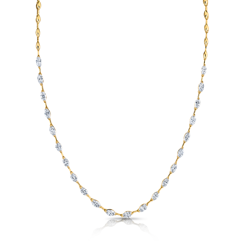 4.35 Carat 18k Yellow Gold Marquise Diamonds Straight Line Bar Necklace
