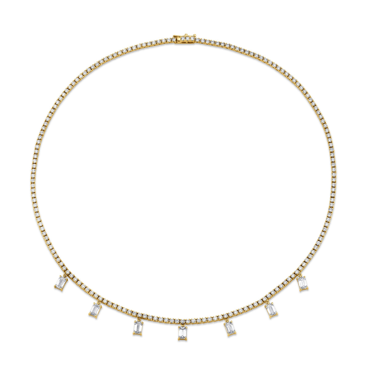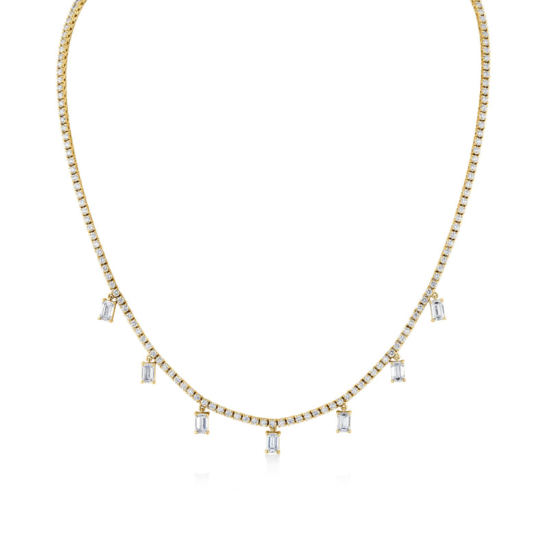 18K Yellow Gold Necklace with Emerald Cut Diamond Charms