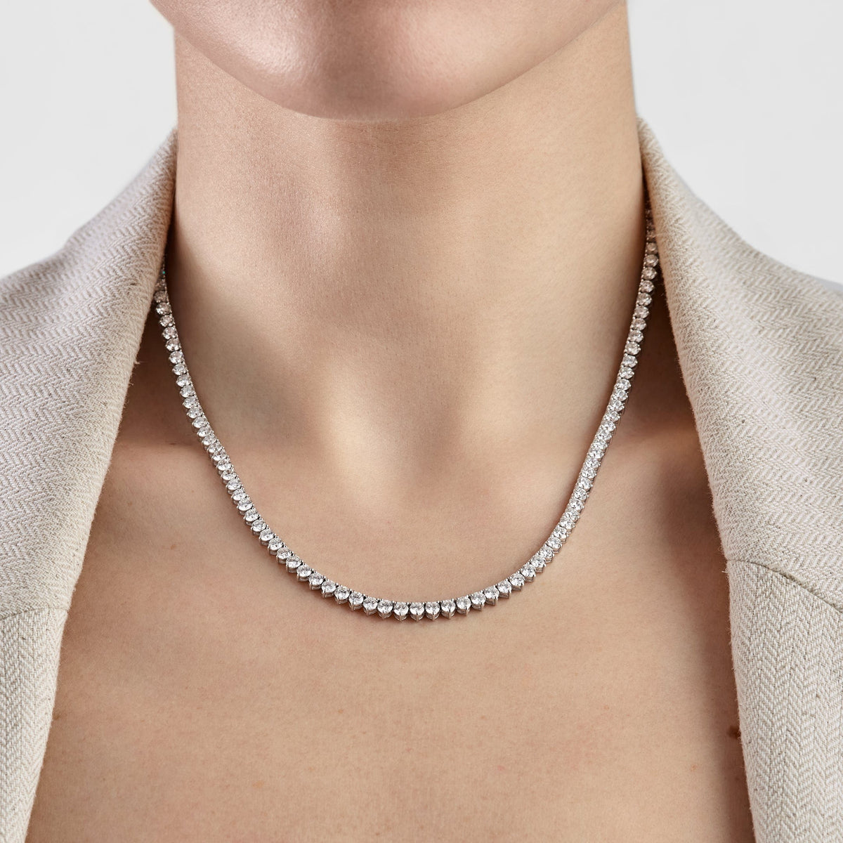 Round Brilliant Cut Diamond Inline Necklace in 18KW by Tennis Connection