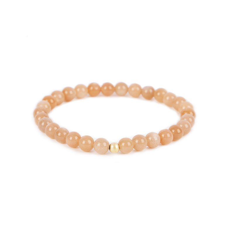 14k Yellow Gold Peach Moonstone Bead Bracelet