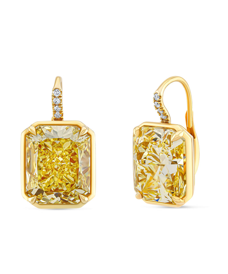 Natural Yellow Radiant Cut Diamonds Drop Earrings