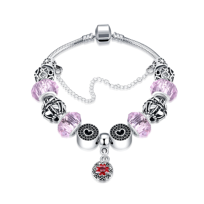 Pink Floral Charm Paisley Pandora Inspired Bracelet