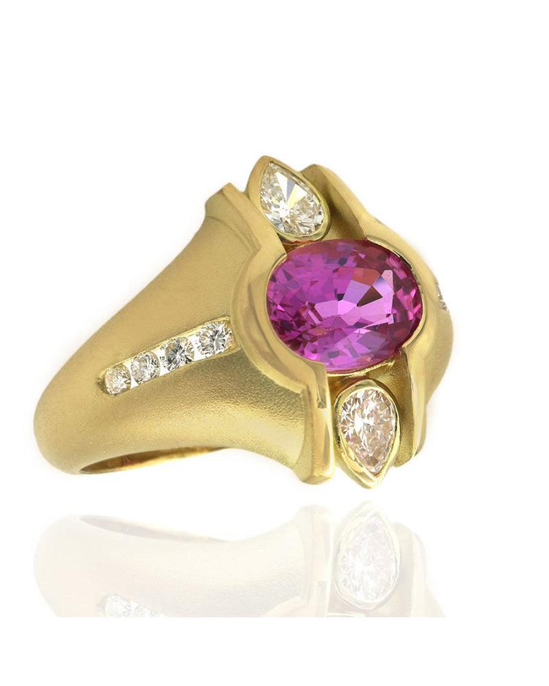 Leo Pizzo Pink Sapphire and Diamond Ring in Gold