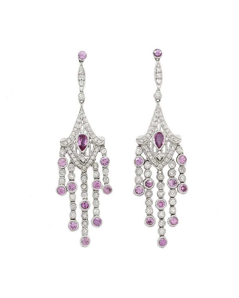 Pink Sapphire and Diamond Earrings in Gold