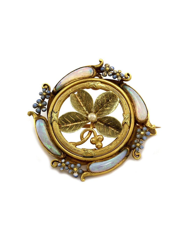 Victorian Opal and Pearl Forget Me Not Brooch