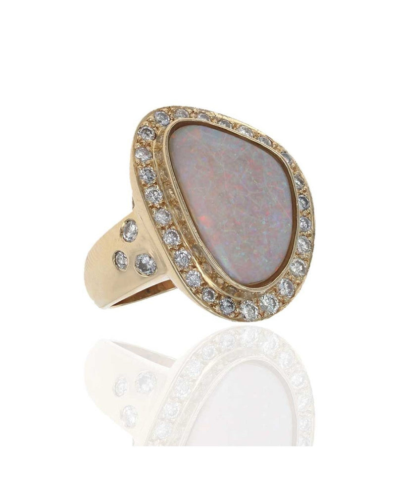 Autralian White Opal and Diamond Halo Ring
