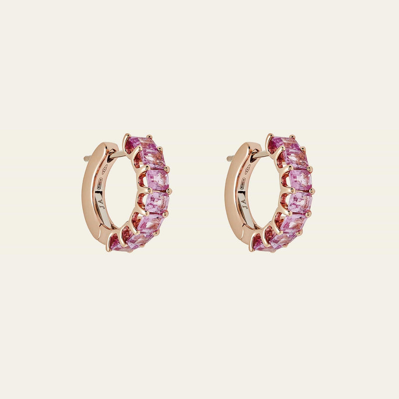 Emerald-Cut Pink Sapphire Hoop Earrings