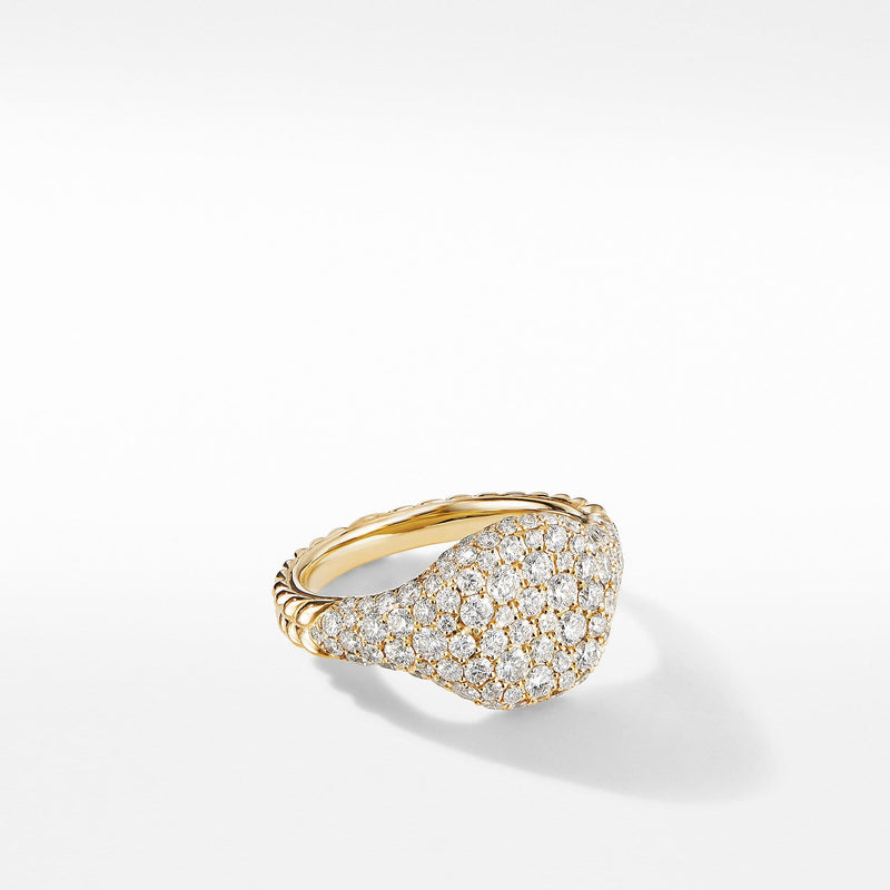 Mini Chevron Pinky Ring in 18K Yellow Gold with Pave Diamonds