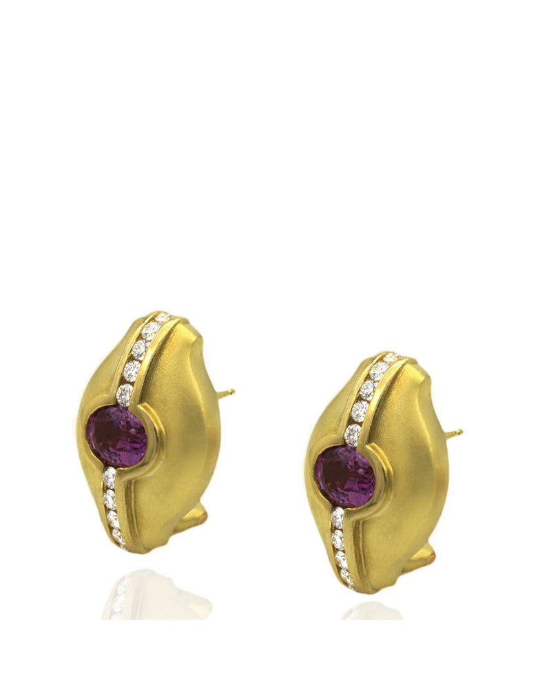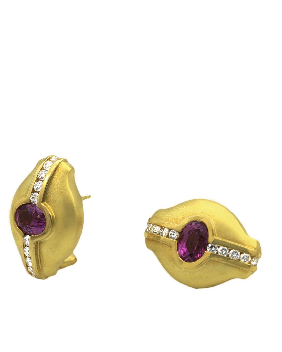 Satin Finish Pink Sapphire and Diamond Earrings
