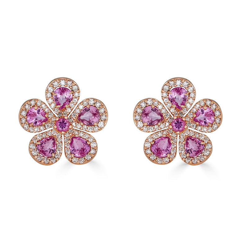 Pink Sapphire & Diamond Classic Flower Earrings