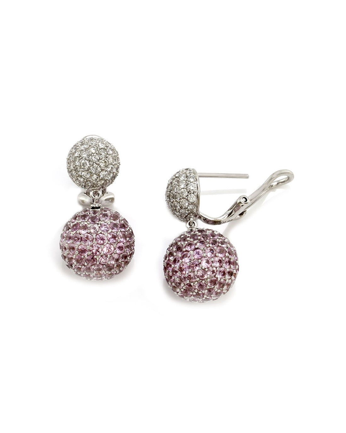 Pave Pink Sapphire and Diamond Earrings in Gold