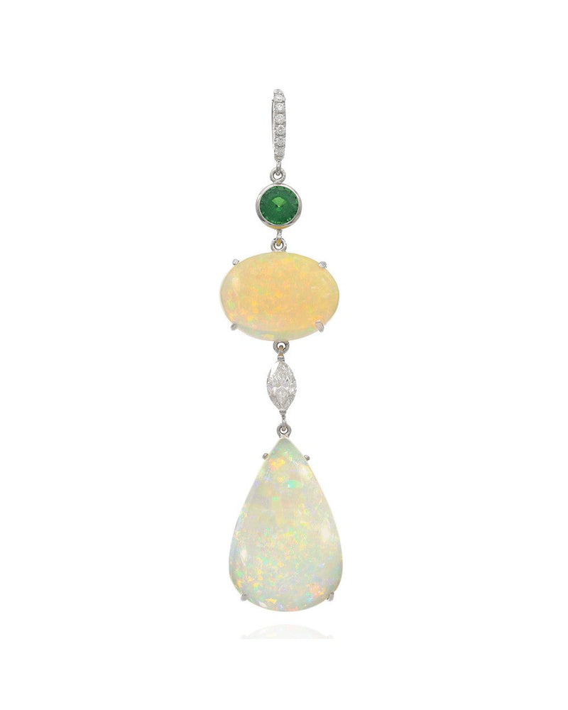 Ethiopian Opal, Tsavorite and Diamond Drop Pendant