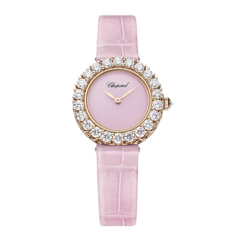 2025 Model Chopard L'Heure Du Diamant Round 26 mm Watch - Ref: 13A178-5319 - Pink Opal Dial in 18k Rose Gold Case, Pink Leather Strap
