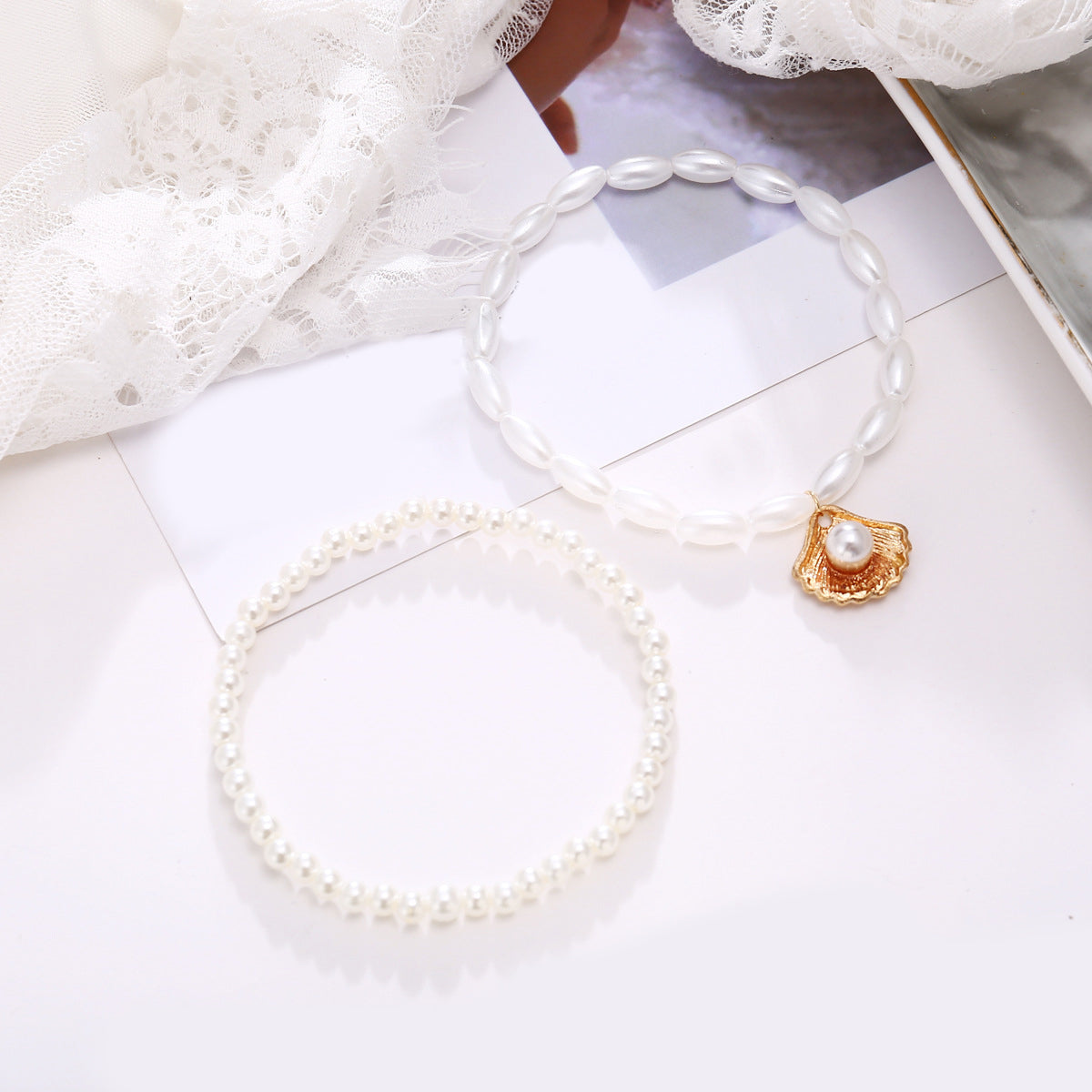 2 Piece Heart and Pearl Bracelet Set 18K Gold Plated Bracelet