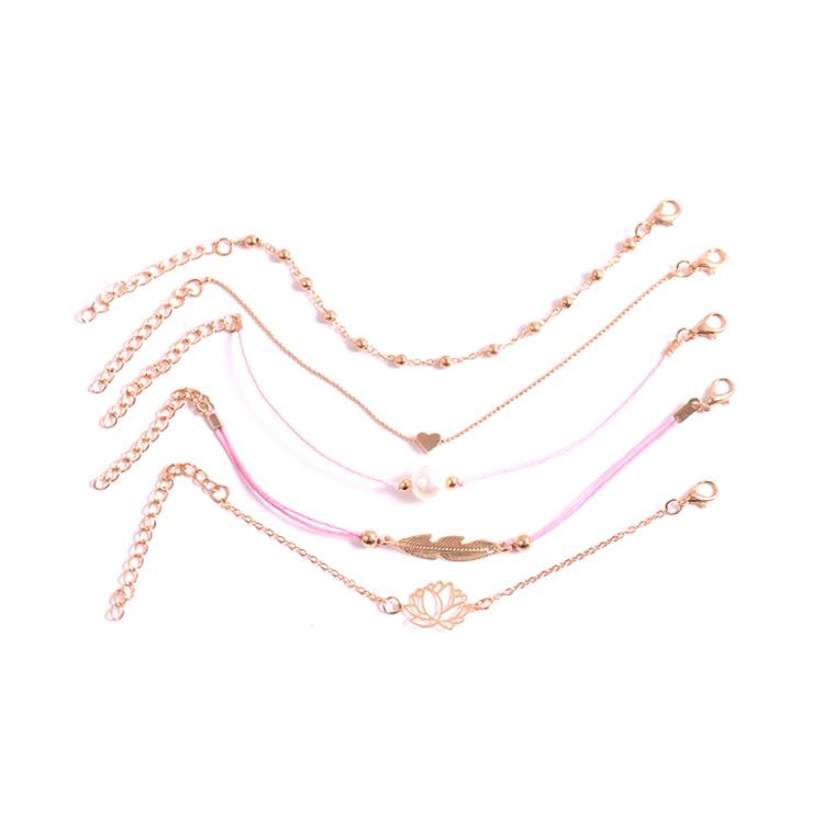 5 Piece Pink Pearl Bracelet Set 18K Gold Plated Bracelet