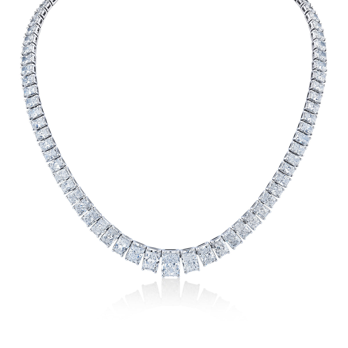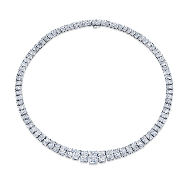48.59 Carat Graduated Riviera Radiant Cut Diamond Necklace