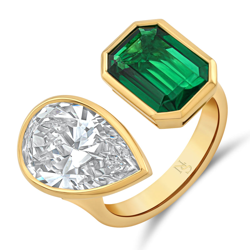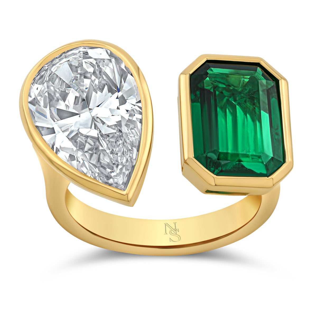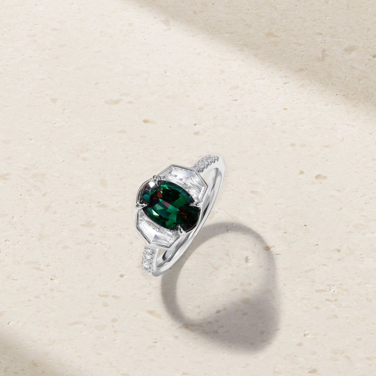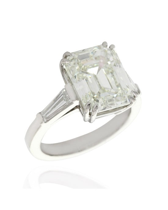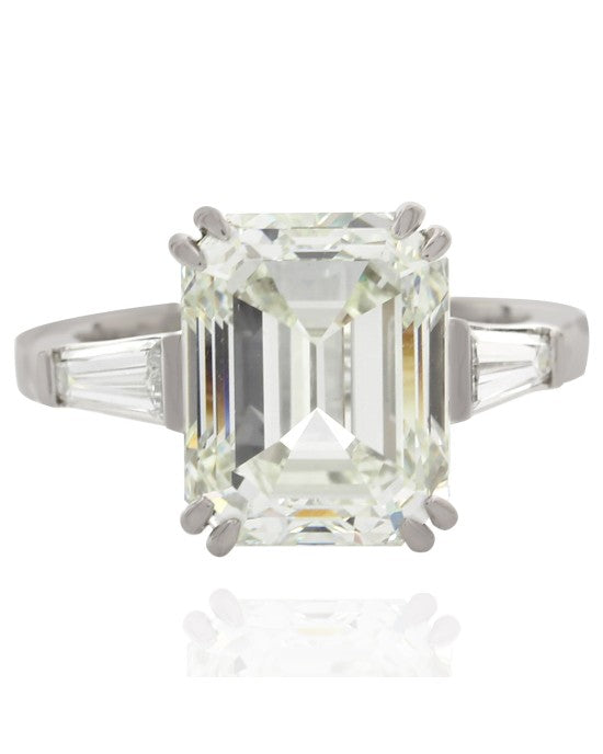 Emerald Cut Emerald with Trapezoid Shaped Diamonds in Platinum and Gold