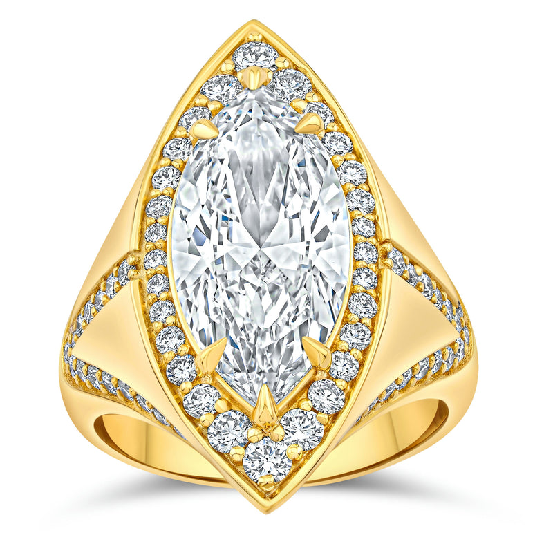 Wide Pave Diamond Engagement Ring with Pear Center in 18k White Gold