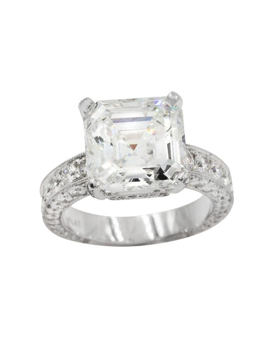GIA Certified Square Emerald Cut Diamond Solitaire Ring in Platinum