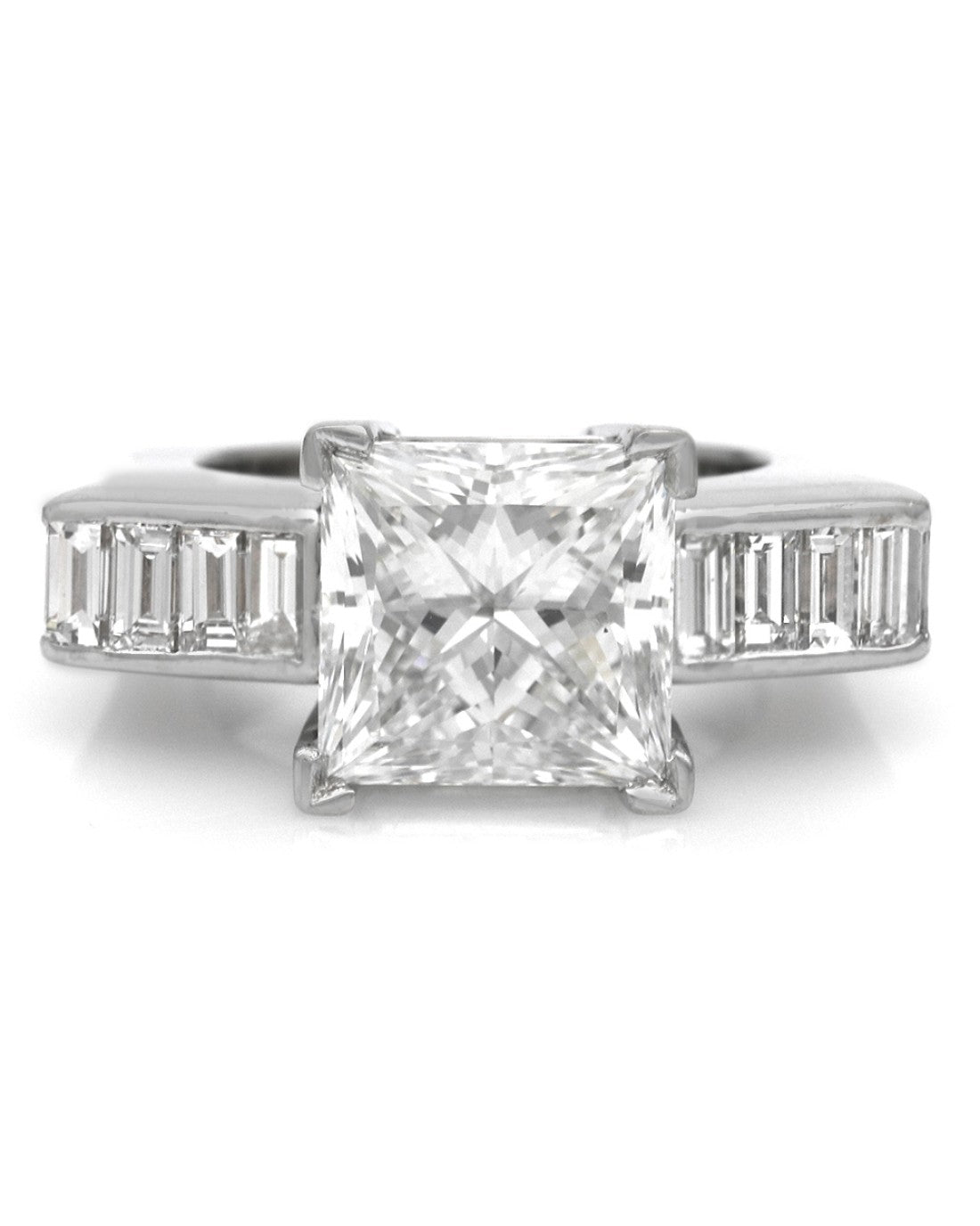 GIA Certified Cushion Cut Diamond & Tycoon Cut Baguette Engagement Ring in Platinum