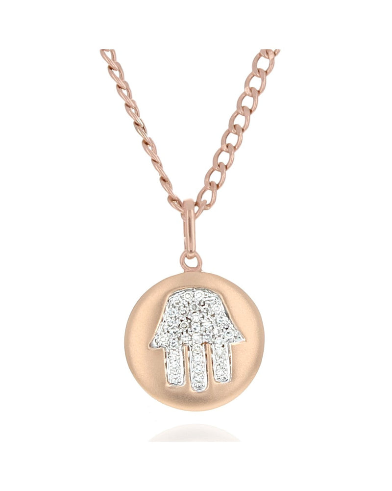 Pave Diamond Hamsa Medallion Necklace in Rose Gold