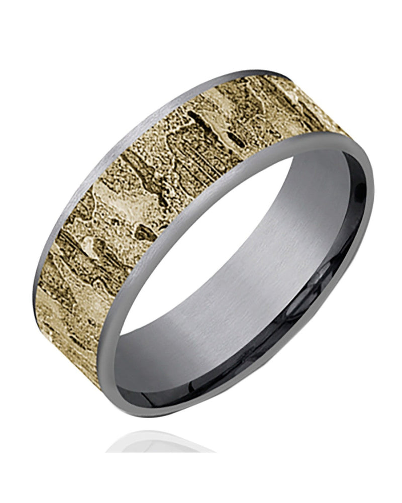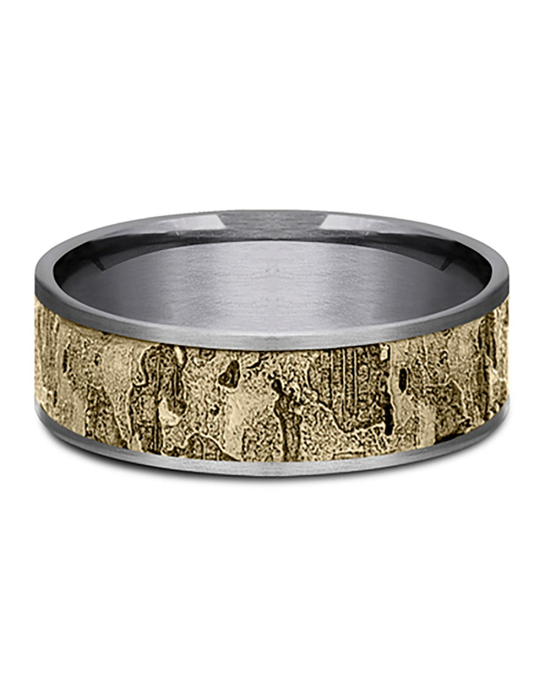 Gentlemen's Tree Bark Pattern Comfort Fit Band in Tantalum and Rose Gold