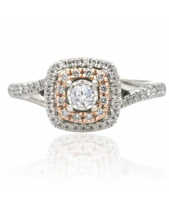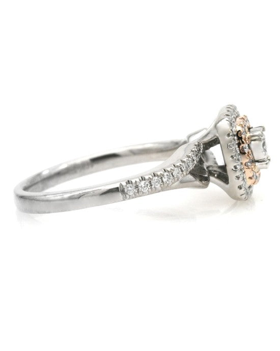 Diamond Double Halo Engagement Ring in White and Rose Gold