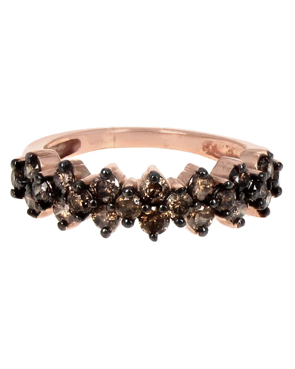 Hidalgo Brown Enamel Flower Band 18K Rose Gold Diamonds