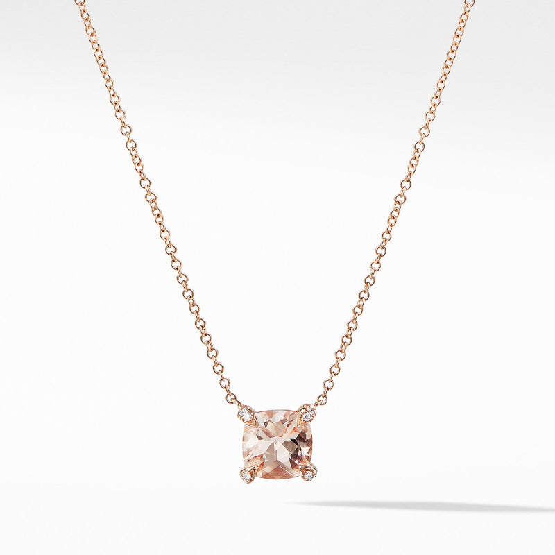 Chatelaine Pendant Necklace with Diamonds in 18K Rose Gold with Morganite