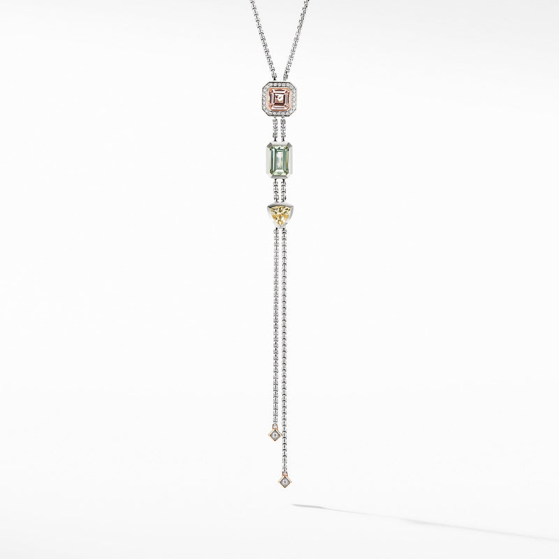 Novella Y Necklace with Morganite, Pave Diamonds and 18K Rose Gold