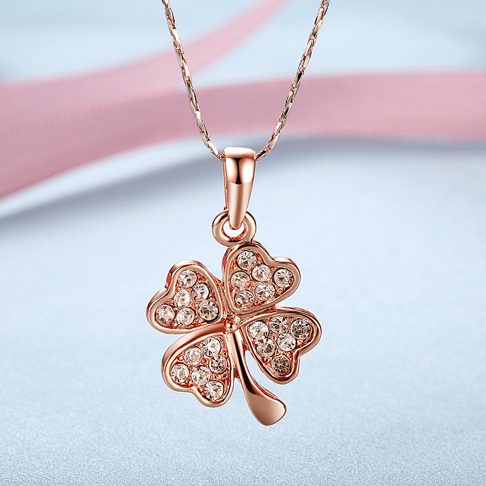 Swarovski Crystal Clover Necklace in 18K Rose Gold Plated