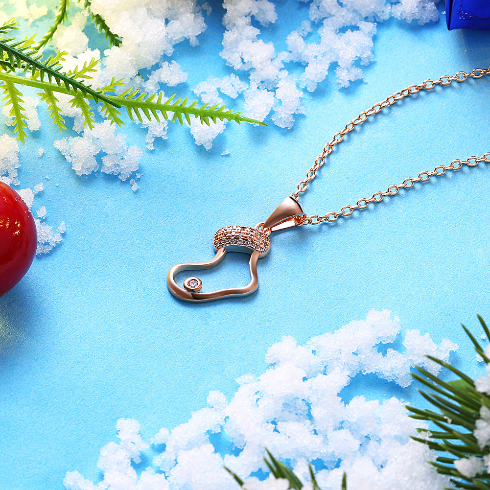 Stocking Christmas Inspired Necklace in 18K Rose Gold Plated