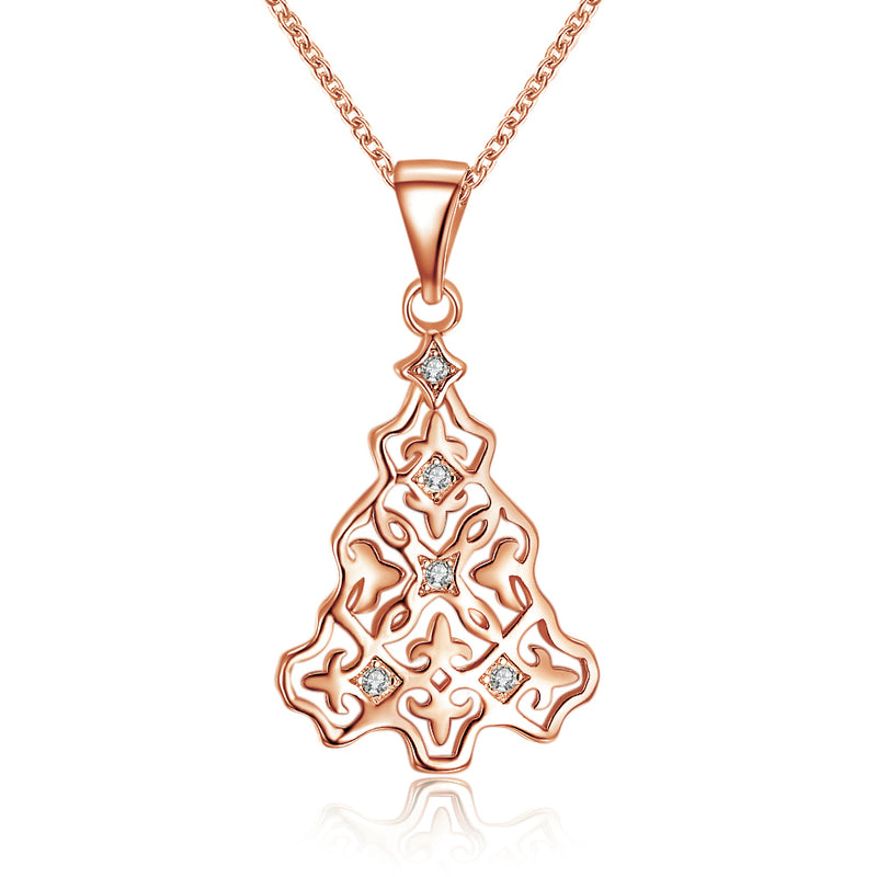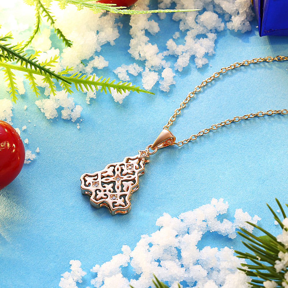 Tree Christmas Inspired Necklace in 18K Rose Gold Plated