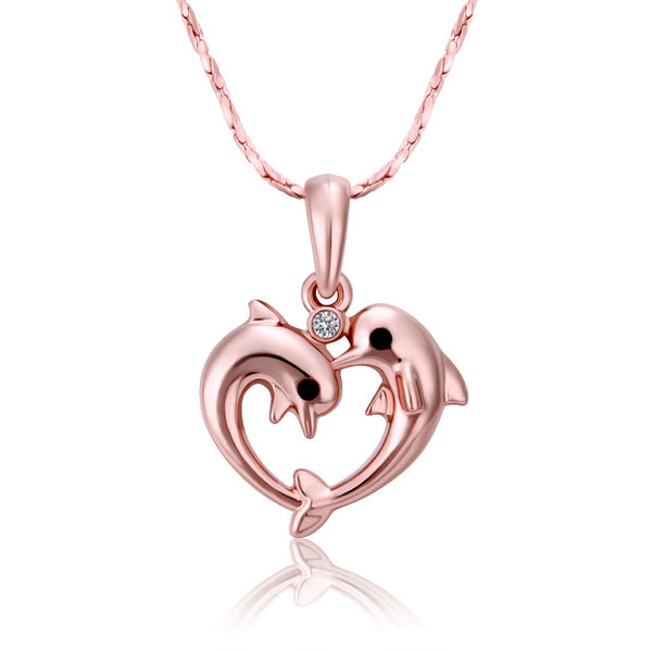 Loving Dolphins Necklace in 18K Rose Gold Plated