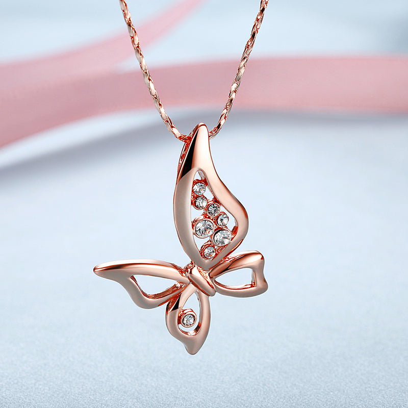 Mothersa Butterfly Necklace in 18K Rose Gold Plated
