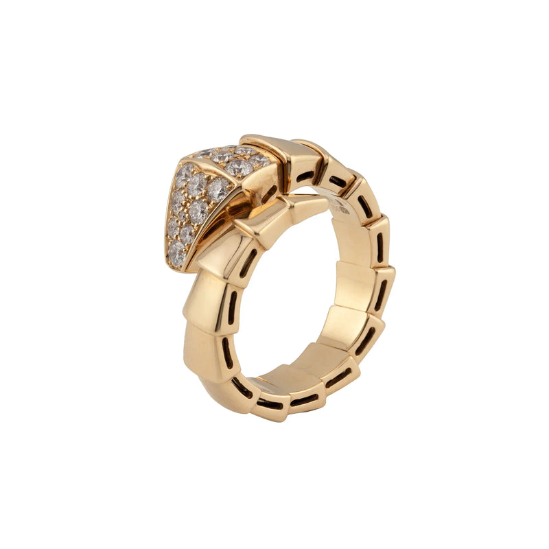 Bulgari 18K Rose Gold Serpenti Viper One-Coil Pave Diamonds Lady's Ring