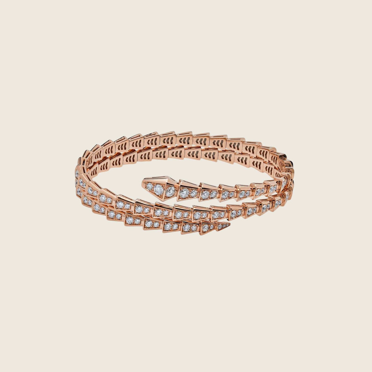 BVLGARI Serpenti Viper Two-Coil Rose Gold Full Pavé Diamonds Bracelet 357270
