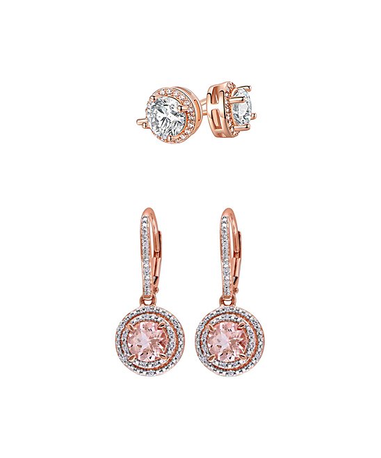 2Pairs- 14K Rose Gold Simulated Morganite & Earrings Set