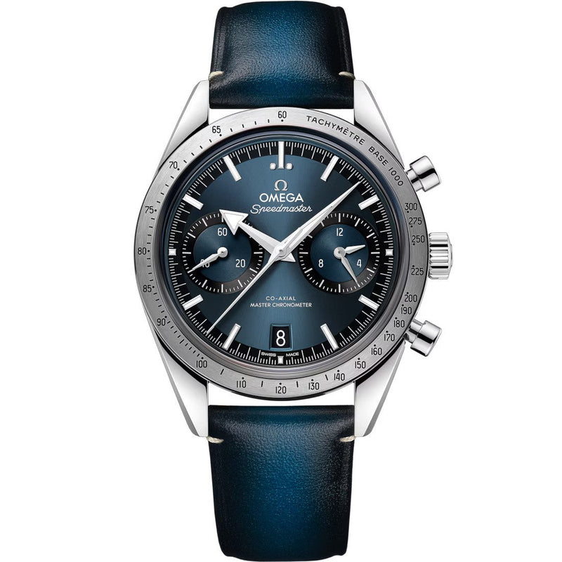 Speedmaster First OMEGA In Space Steel on Leather Strap Blue & Grey