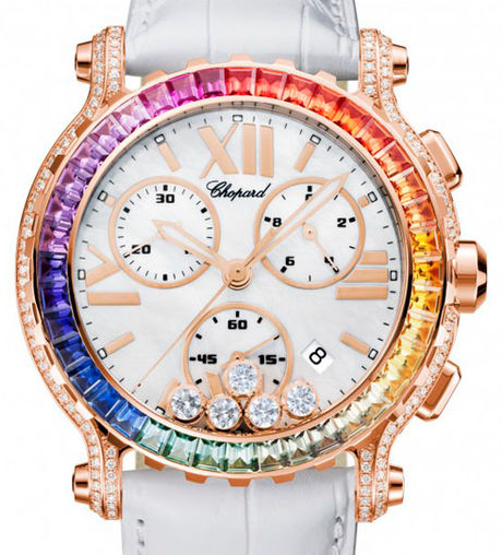 Chopard Happy Sport Chono Ethical 18K Rose Gold & Diamonds & Colored Sapphires Ladies Watch