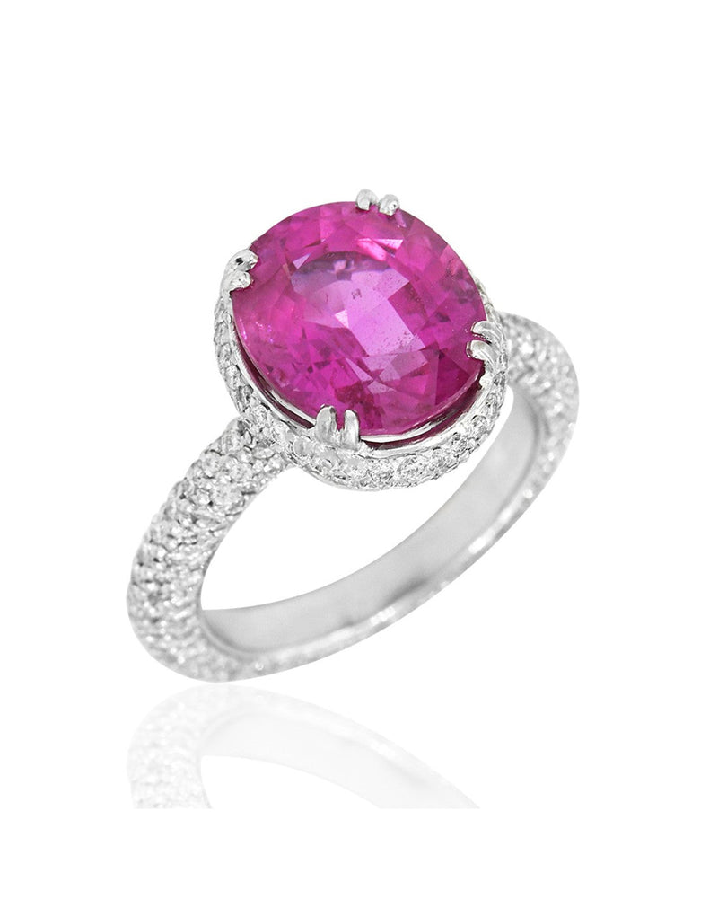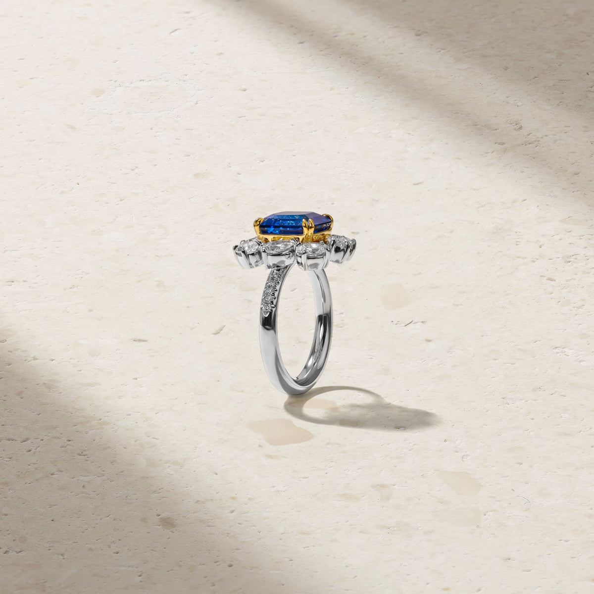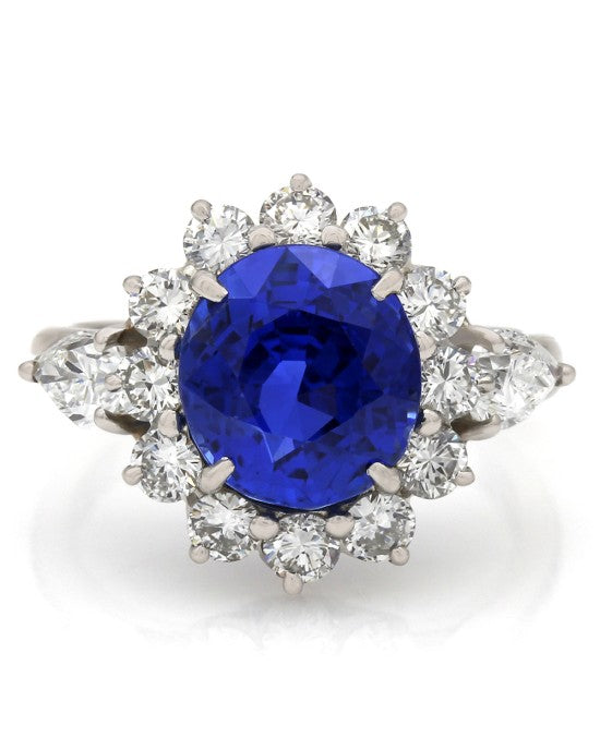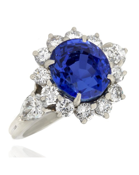 Oval Sapphire and Diamond Halo Ring in Platinum