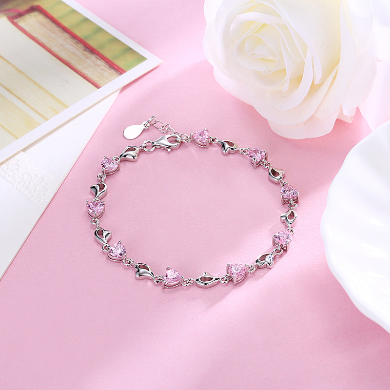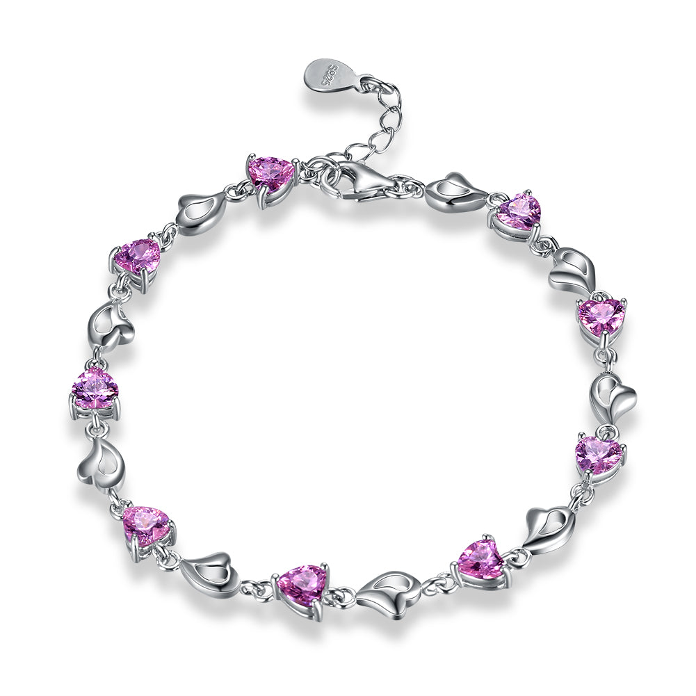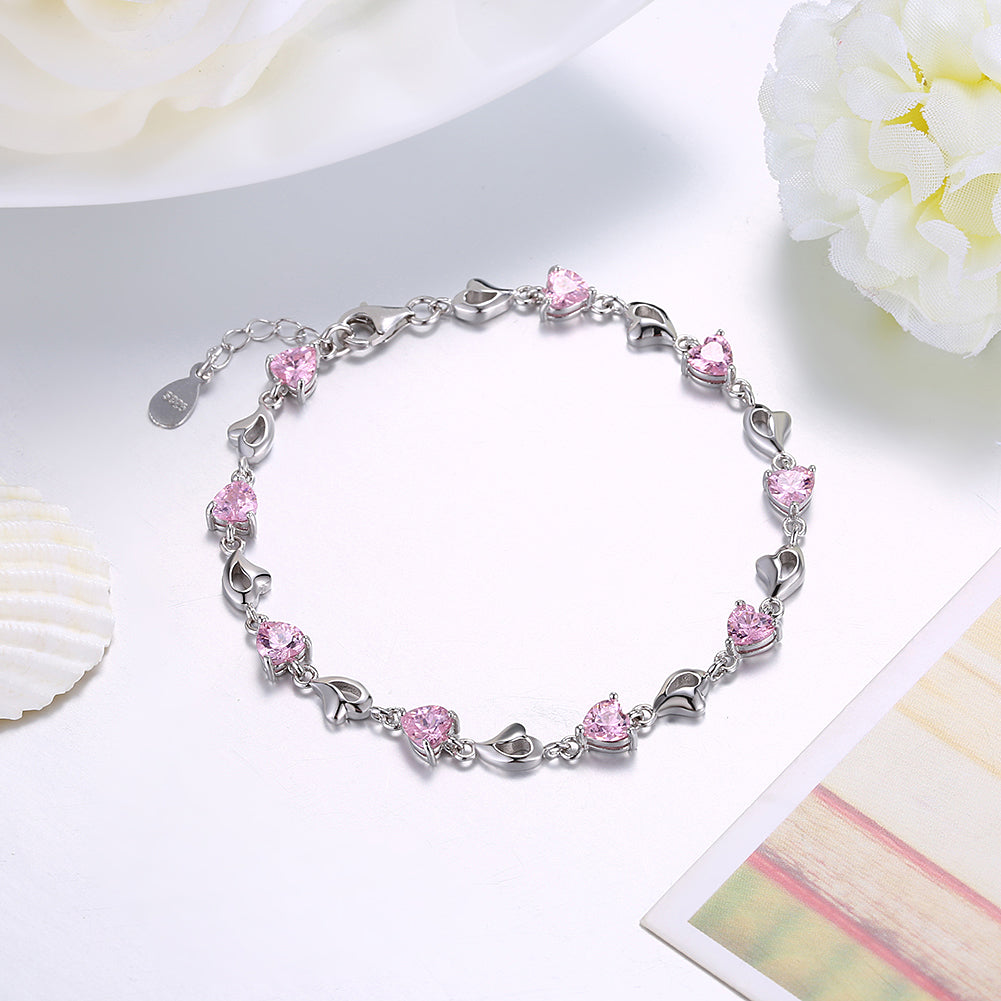 15.00 CT Pink Topaz Heart Sterling Silver Bracelet