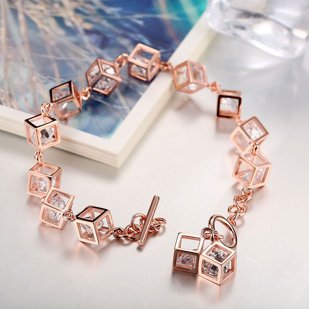 18K Rose Gold over Sterling Silver RUBIX CUBE Bracelet