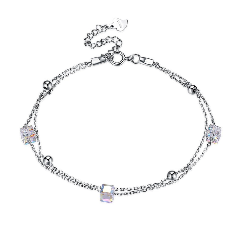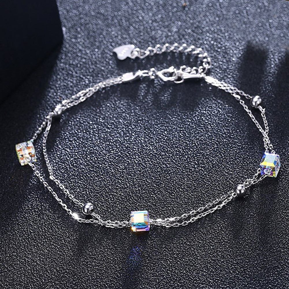 5.00 CT Aurora Borealis Stones Sterling Silver Charm Bracelet
