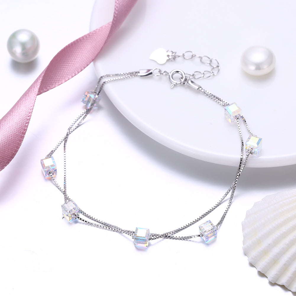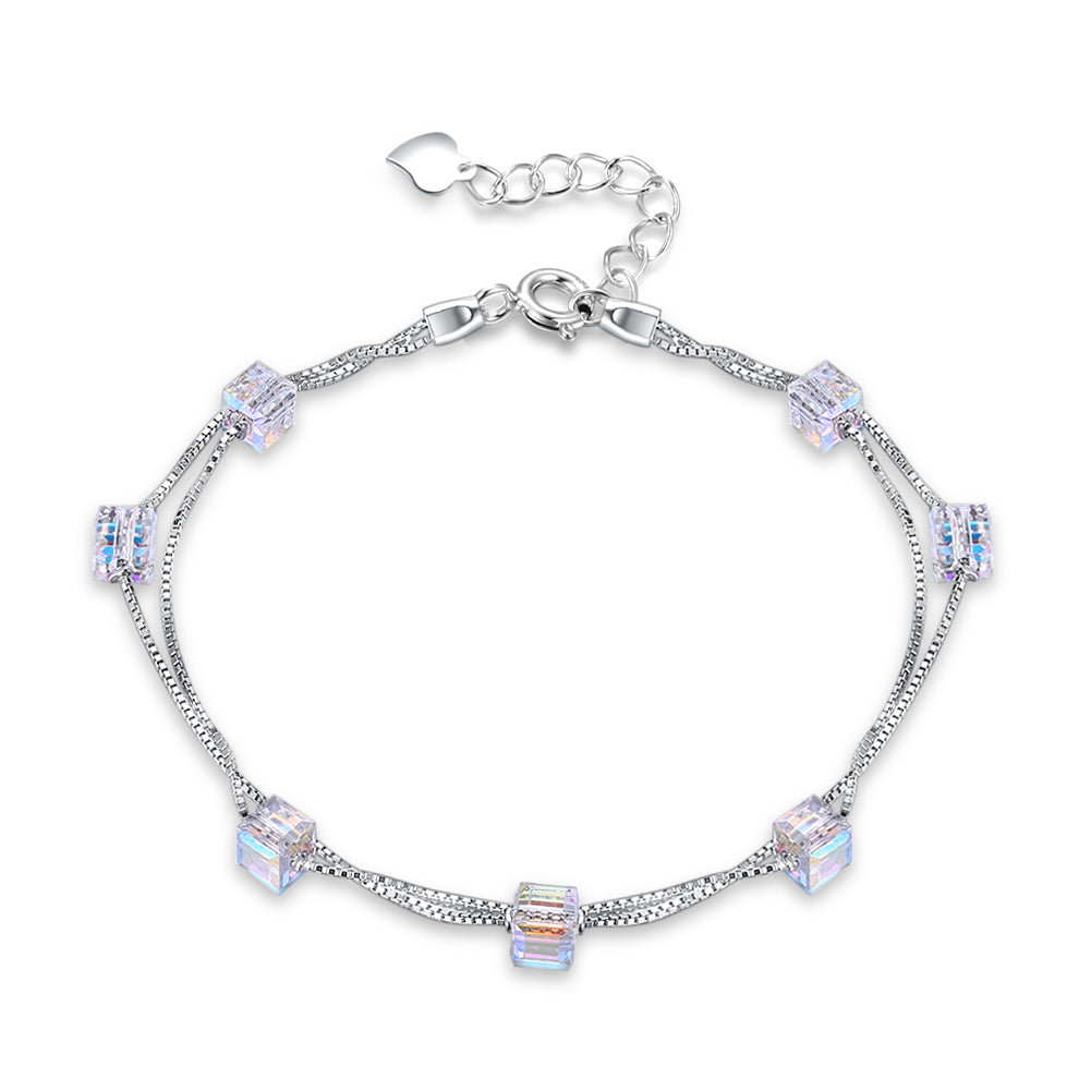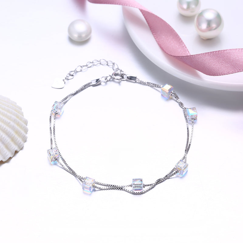 Aurora Borealis Orchid Sterling Silver Charm Bracelet