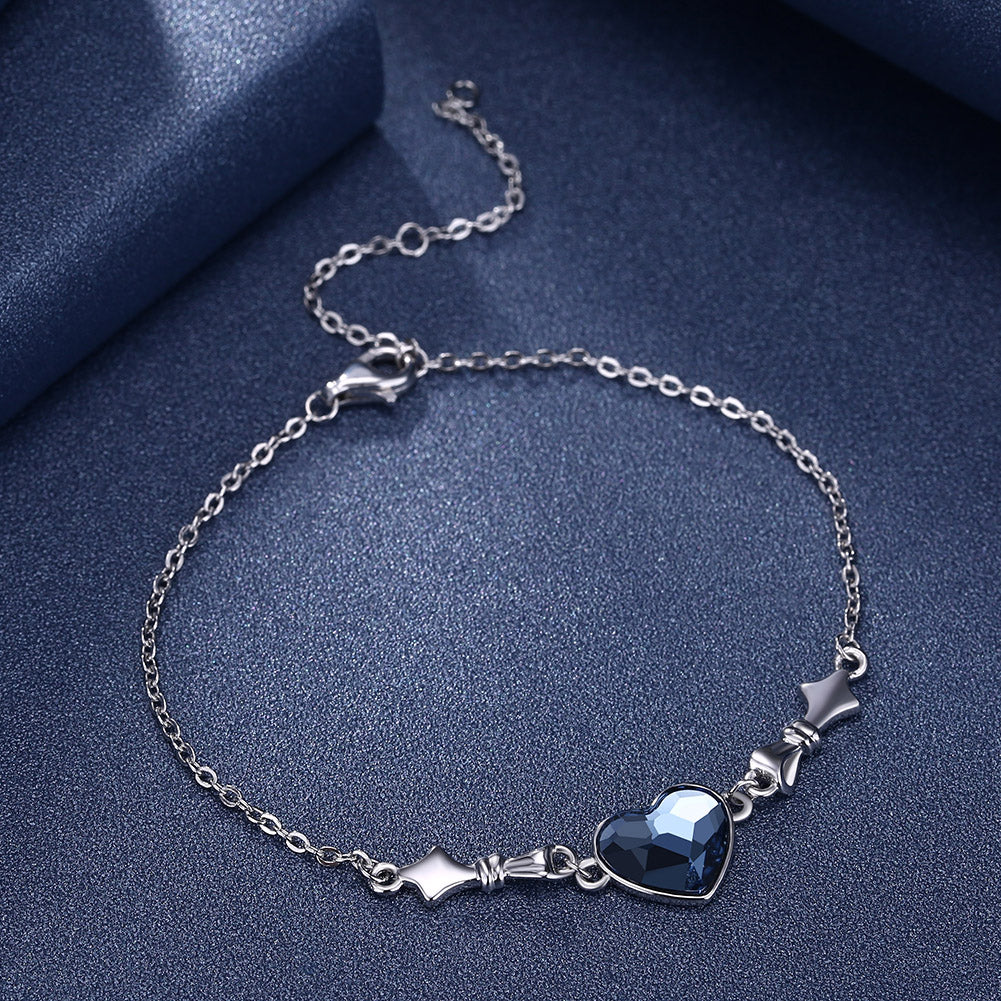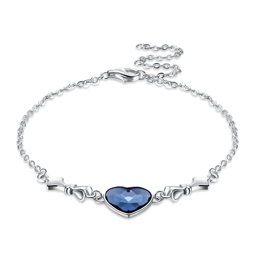 Bermuda Blue Swarovski Crystals Sterling Silver Heart Bracelet