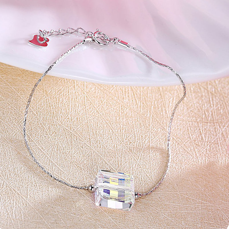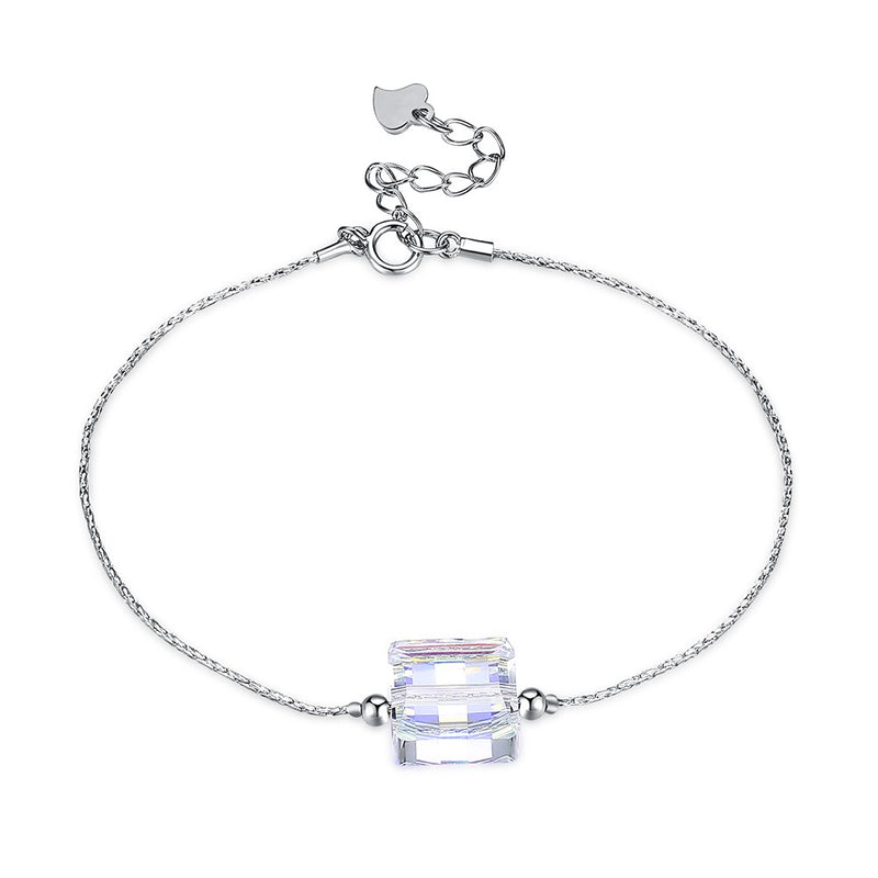 Emerald Cut Aurora Borealis Stones Sterling Silver Charm Bracelet