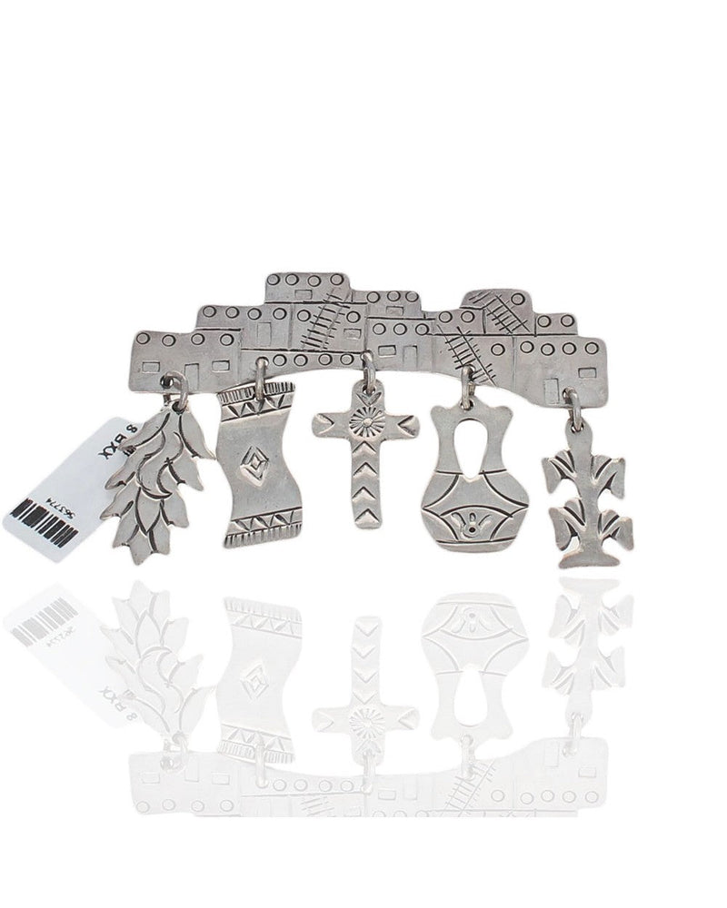 Navajo Sterling Silver Pueblo & Charms Pin